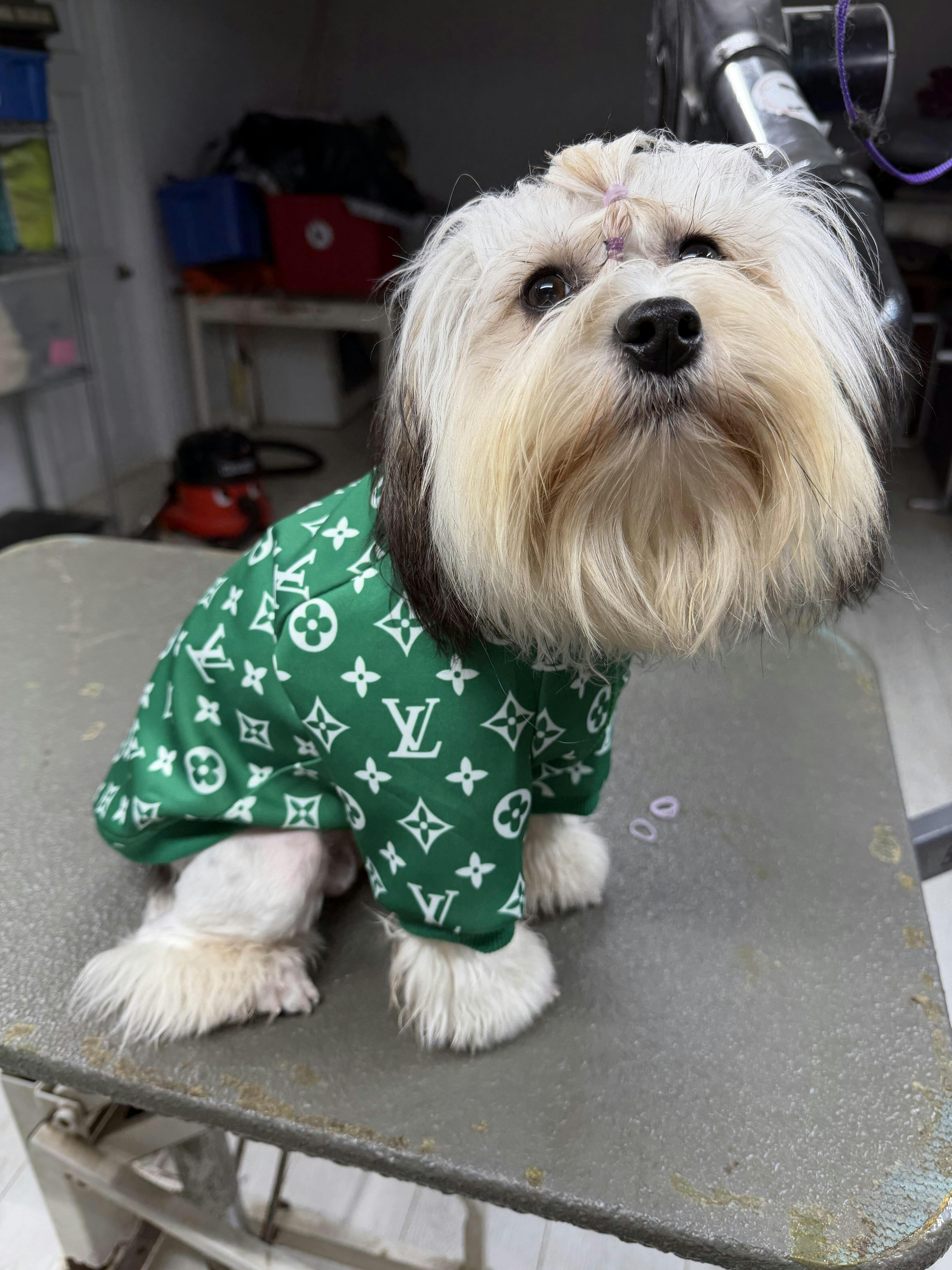 Il bomber Emerald Avenue offre un lusso audace con una vivace tela monogrammata verde e un colletto sportivo a righe. Progettato con una chiusura frontale con zip per una vestibilità comoda, unisce lo stile streetwear a una silhouette raffinata, rendendolo perfetto per gli amici a quattro zampe che amano distinguersi con stile in ogni uscita.