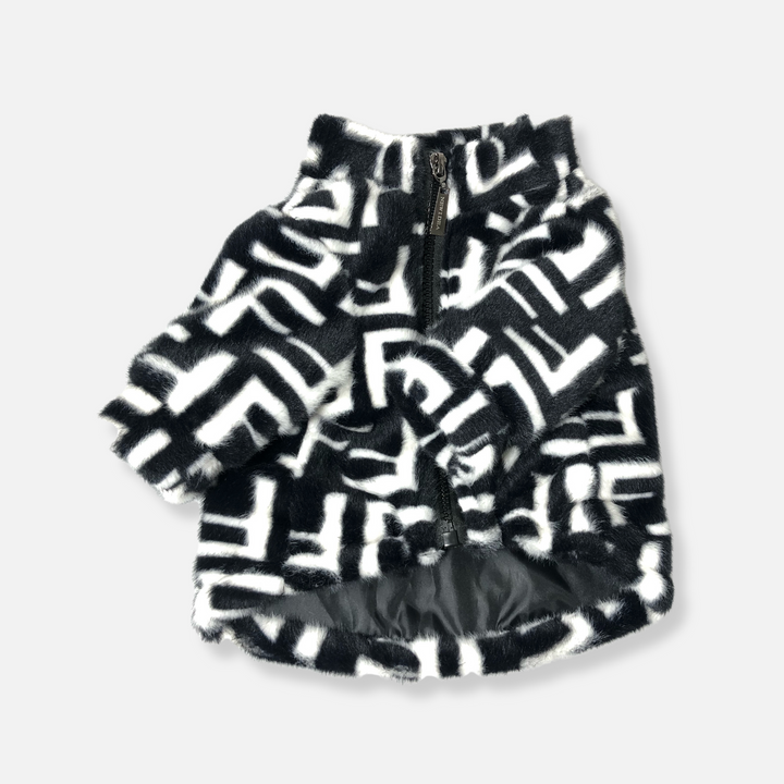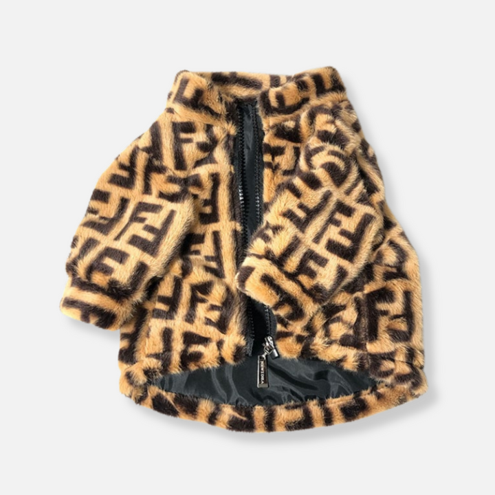 The Imperial Coat wraps your pet in opulence, featuring a plush faux fur exterior with bold geometric monogram detailing. Designed to deliver warmth without compromising style, it’s available in Midnight Frost for a dramatic statement or Golden Sand for a rich, classic touch. Perfect for winter strolls or high-fashion photoshoots, this piece turns cold-weather dressing into a runway moment.